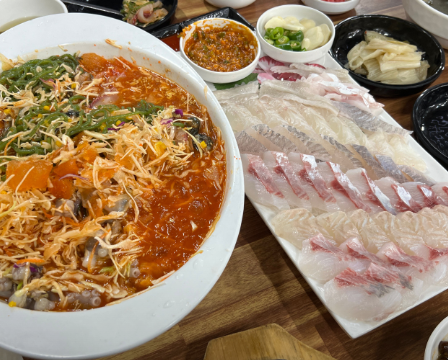 게다가 회도 두툼하게 썰어 씹는 맛이 좋고 얼큰하고 시원한 매운탕까지 드시면 아주 좋습니다.