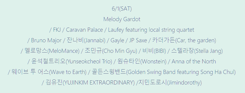 5월 31일(금)부터 6월 2일(일)까지 3일간 올림픽공원 내 4개의 무대에서 펼쳐칩니다.